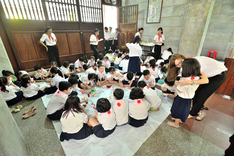 Tại hội trường, các em Ngành Ấu đang đùa vui reo hò ầm ĩ, làm cho bầu khí của ngày hội trở nên ồn ào và náo nhiệt hơn qua tiết mục “Bắt cá” lần lượt từng em tiến vào trong hồ nước qua đôi tay khéo léo làm sao bắt được con cá nhỏ thả trong hồ thì sẽ nhận được một phần quà. Khác với không khí ồn ào dưới hội trường, trên tiền sảnh nhà thờ các em Chiên non đang âm thầm miệt mài tô vẽ từng nét trên các con vật sao cho hoàn thành thì sẽ nhận được một phần quà. Qua cuộc trò chuyện với bé Lê Phúc Khải, 5 tuổi, đeo khăn màu hồng, và bé Lê Như Khuê, 4 tuổi, là anh em ruột đang cùng nhau tô hình tượng một con rùa. Khi được hỏi, hai anh em vẽ như này có ai hướng dẫn không, bé Khải trả lời; không có ai mà tự con vẽ đấy, vậy tô vẽ mà quần áo lấm lem hết như vầy về nhà cháu có sợ ba mẹ rầy la không?. Bé hồn nhiên trả lời: dạ không ạ! Chúng con rất thích chơi ở nhà thờ vì có đông các bạn, và còn có quà nữa, còn ở nhà chúng con không được chơi vui như vậy. Quả thật, nhìn các em hồn nhiên vui chơi, quần áo lấm lem ướt đẫm mồ hôi, nhưng nét mặt vẫn cười nói vui vẻ. Qua đây, phần nào gợi nhớ cho người lớn chúng ta quay về kí ức tuổi thơ trước đây của mình. Được biết, đây là một trong chuỗi chương trình giáo dục giáo lý của Đoàn TNTT định hướng cho các em thiếu nhi trong giáo xứ.
