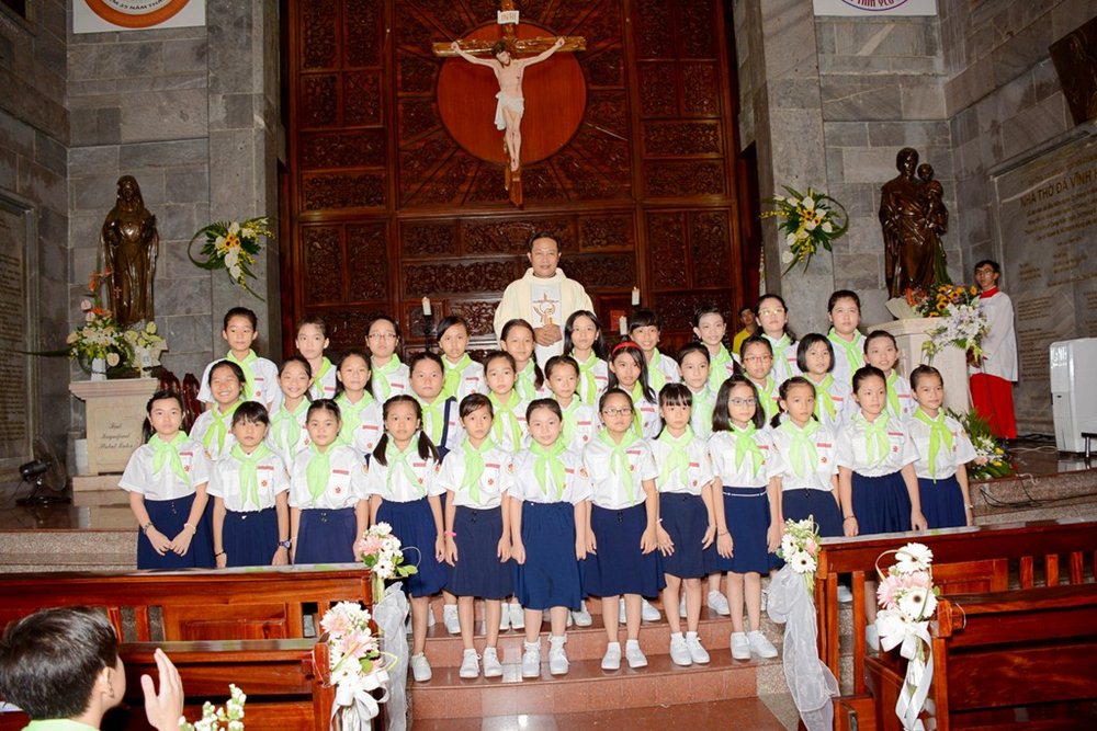 “Hôm nay, lần đầu tiên các con được Chúa mời gọi đến tham dự bữa tiệc Thánh. Bữa tiệc này chính là Mình và Máu Chúa Giêsu”.