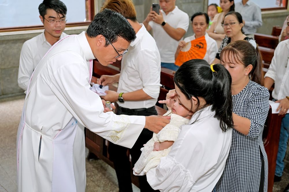 Vào lúc 8g30 sáng Chúa nhật ngày 7-5-2023, thầy Phó tế Gioan Hoàng Xuân Hải SVD, Dòng Ngôi Lời, đã chủ sự nghi thức Rửa tội cho các trẻ sơ sinh trong giáo xứ.