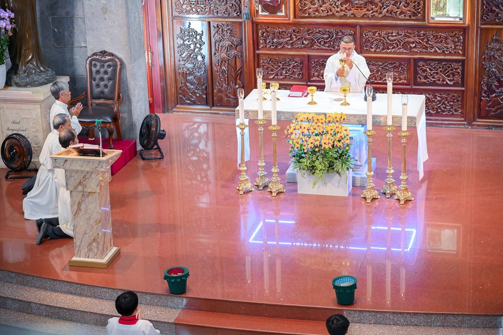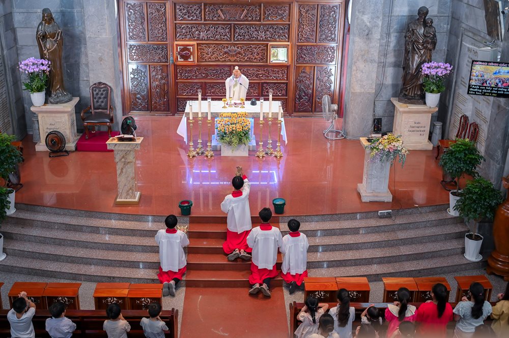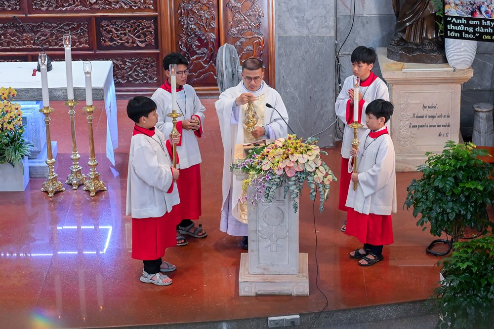 Thánh lễ tiếp nối với phần phụng vụ Thánh Thể và kết thúc lúc 18g30.