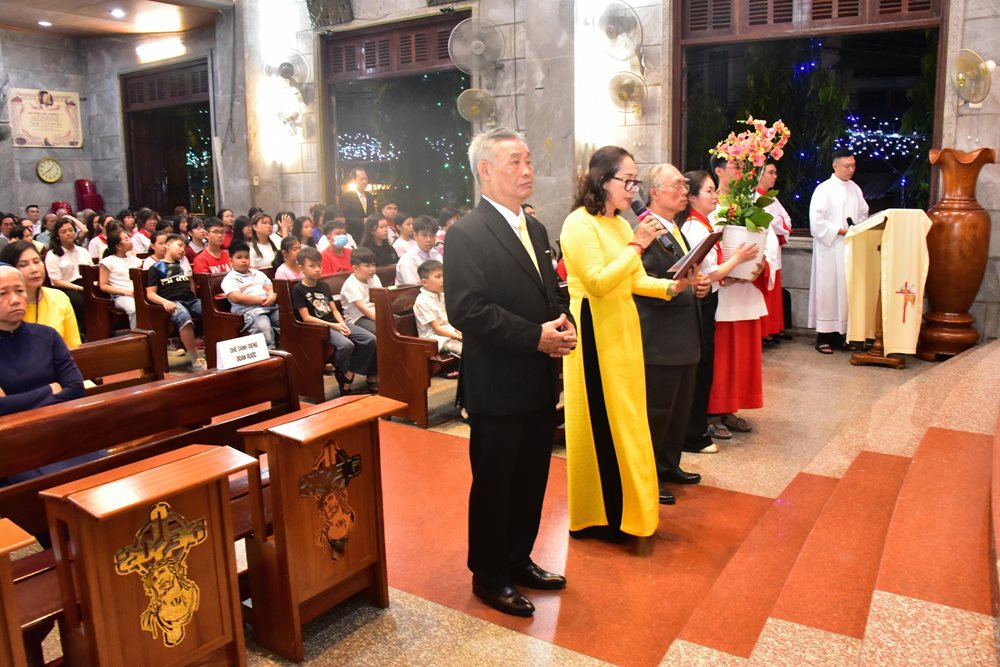 Sau cuộc rước, bà Maria Nguyễn Thị Thường, Chủ tịch Hội đồng Mục vụ, thay lời cộng đoàn bày tỏ tâm tình tri ân và chúc Tết cha chánh xứ Martinô.