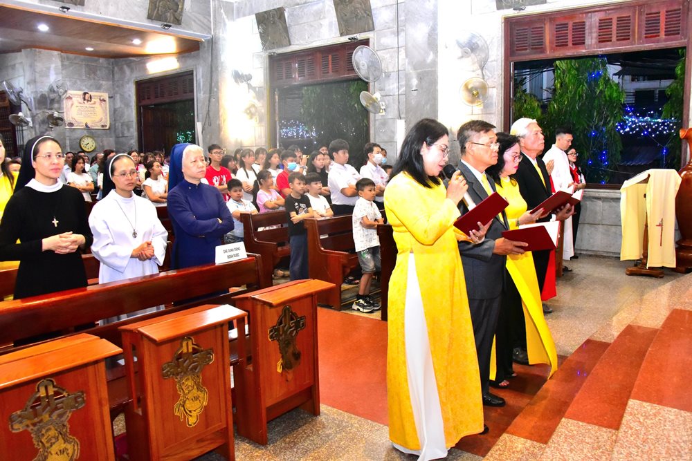 Trước Thánh lễ, đại diện Hội đồng Mục vụ cùng các em lễ sinh long trọng rước Lm chủ tế từ sân nhà thờ tiến vào thánh đường trong niềm hân hoan của cộng đoàn.