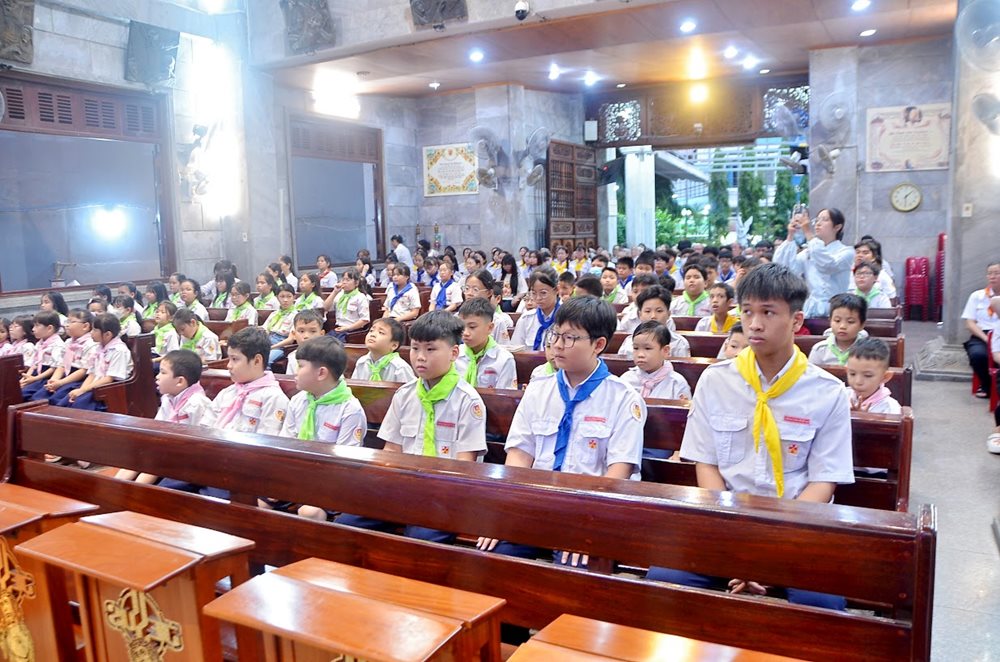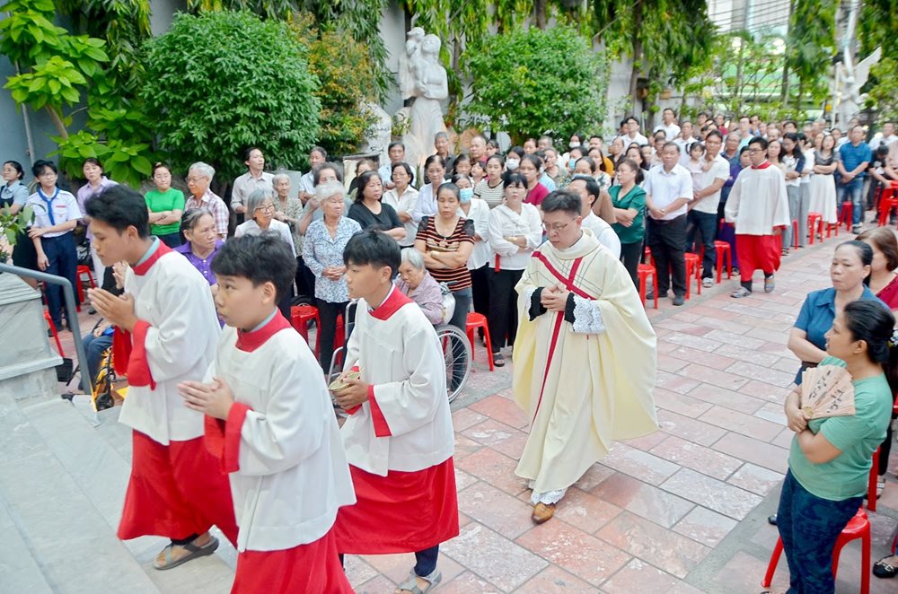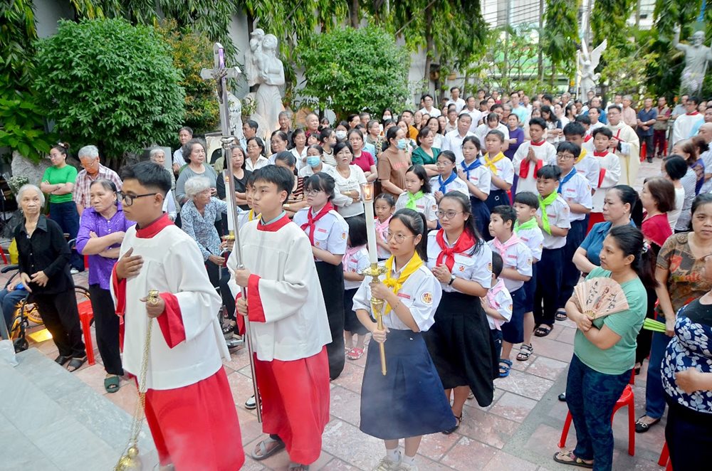 Hiện diện trong Thánh lễ có các thầy Dòng Linh mục Thánh Tâm Chúa Giêsu, các nữ tu Dòng Mân Côi Chí Hòa, cùng đông đảo các em thiếu nhi và giáo dân trong giáo xứ.